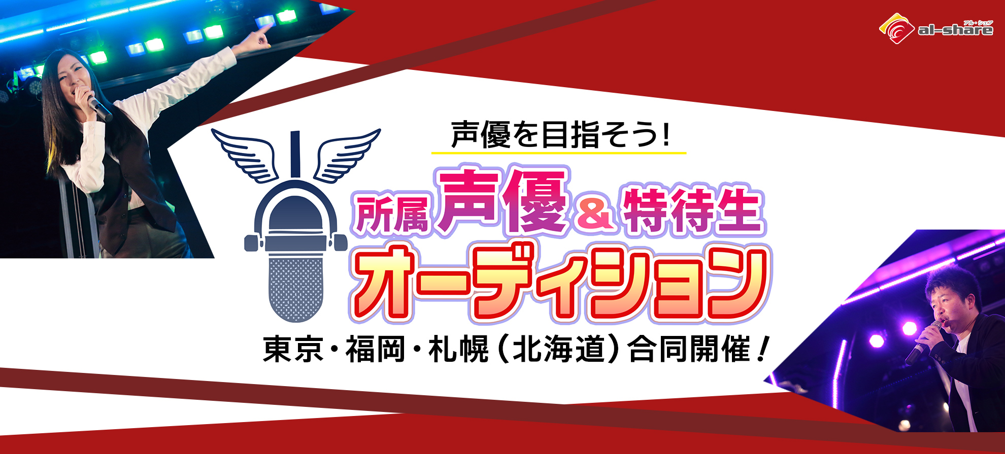 声優事務所アル・シェア 所属声優&特待生オーディション 東京・福岡・札幌(北海道)合同開催!