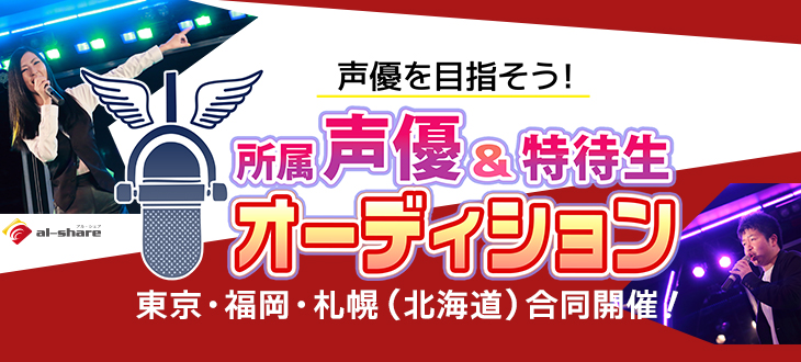 声優事務所アル・シェア 所属声優&特待生オーディション 東京・福岡・札幌(北海道)合同開催!
